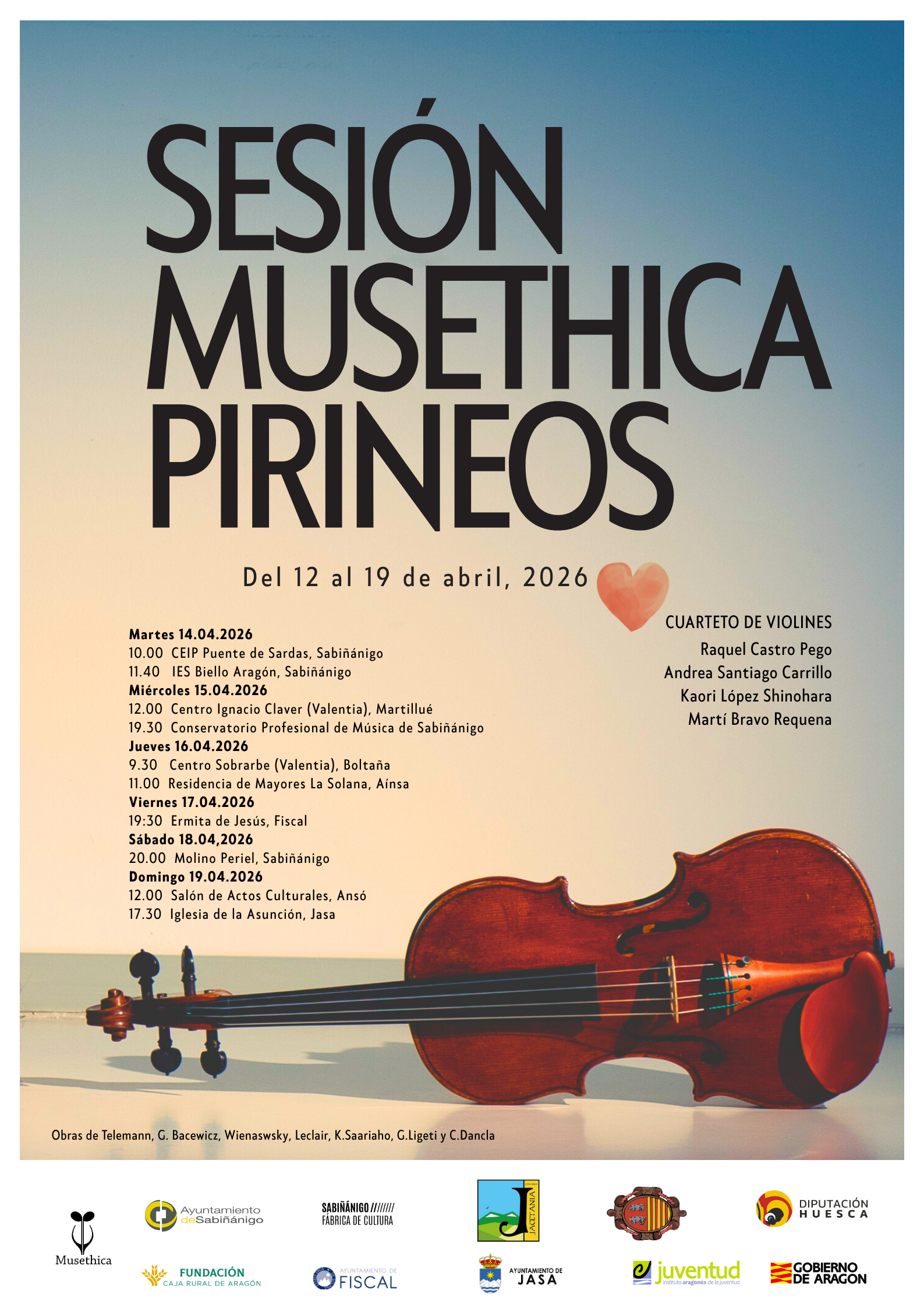 Musethica nació en Zaragoza en 2012, fundada por el violista Avri Levitan y la profesora Carmen Marcuello. Su vocación es doble: