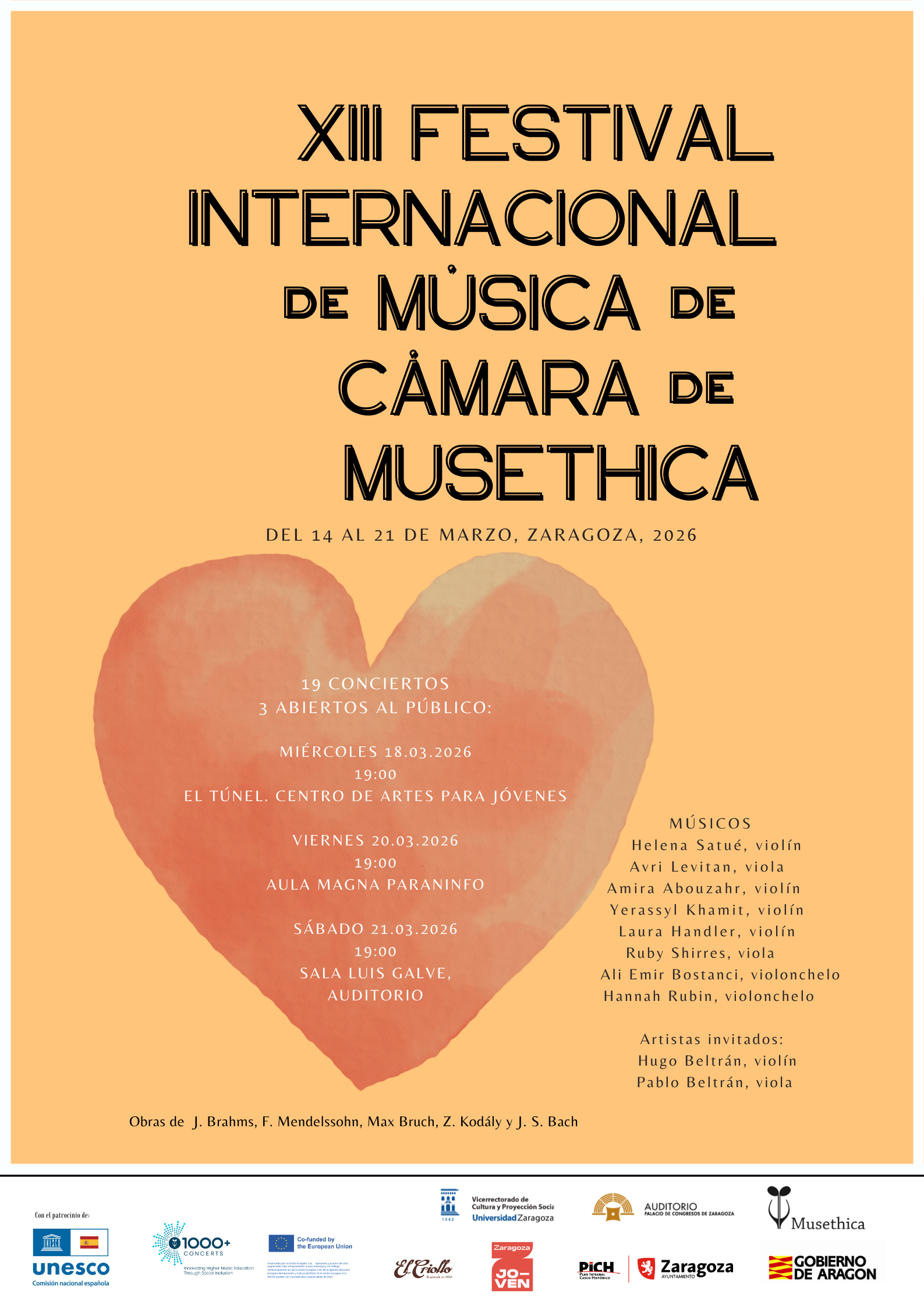 Este Festival Musethica forma parte del proyecto europeo "1000+ Concerts: Innovating Higher Music Education through Social Inclusion", que pretende transformar la educación musical superior en Europa promoviendo un enfoque socialmente comprometido de la enseñanza de la música clásica. Esta iniciativa cuenta con el apoyo del Programa Cultura de Europa Creativa, una iniciativa de la UE destinada a fomentar la diversidad cultural y la cooperación internacional en el sector cultural.